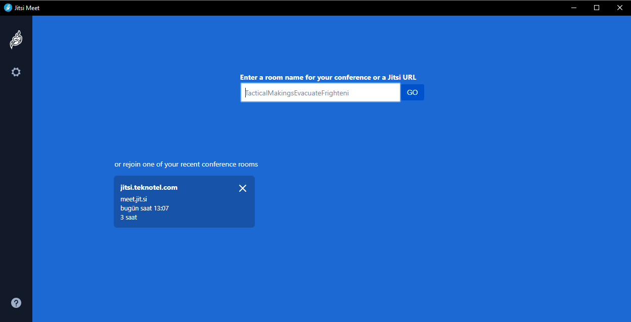 Açılan konferansa web üzerinden jitsi.teknotel.com adresine girerek veya masaüstü uygulamasına paylaşılmış adresi yazarak katılabilirsiniz.
